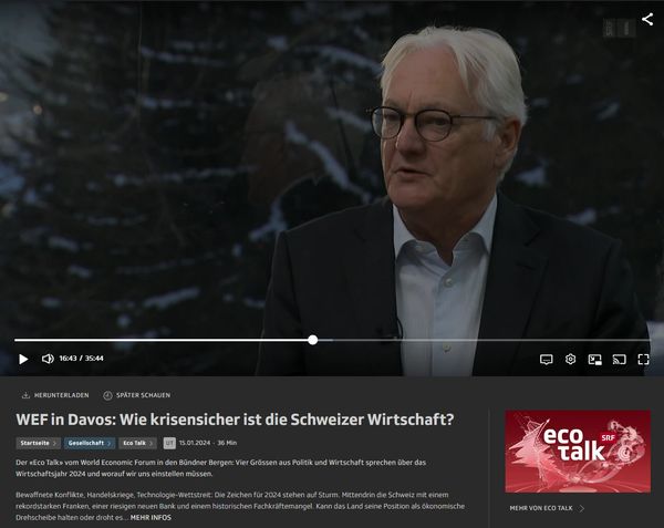 Der «Eco Talk» vom World Economic Forum in den Bündner Bergen: Wie sieht die Wirtschaft der Zukunft aus und welche Rolle wird die Schweiz darin spielen? Darüber diskutiert Andi Lüscher u.a. mit ABB-Präsident Peter Voser auch über die Bedeutung von KI und was zu tun ist ...